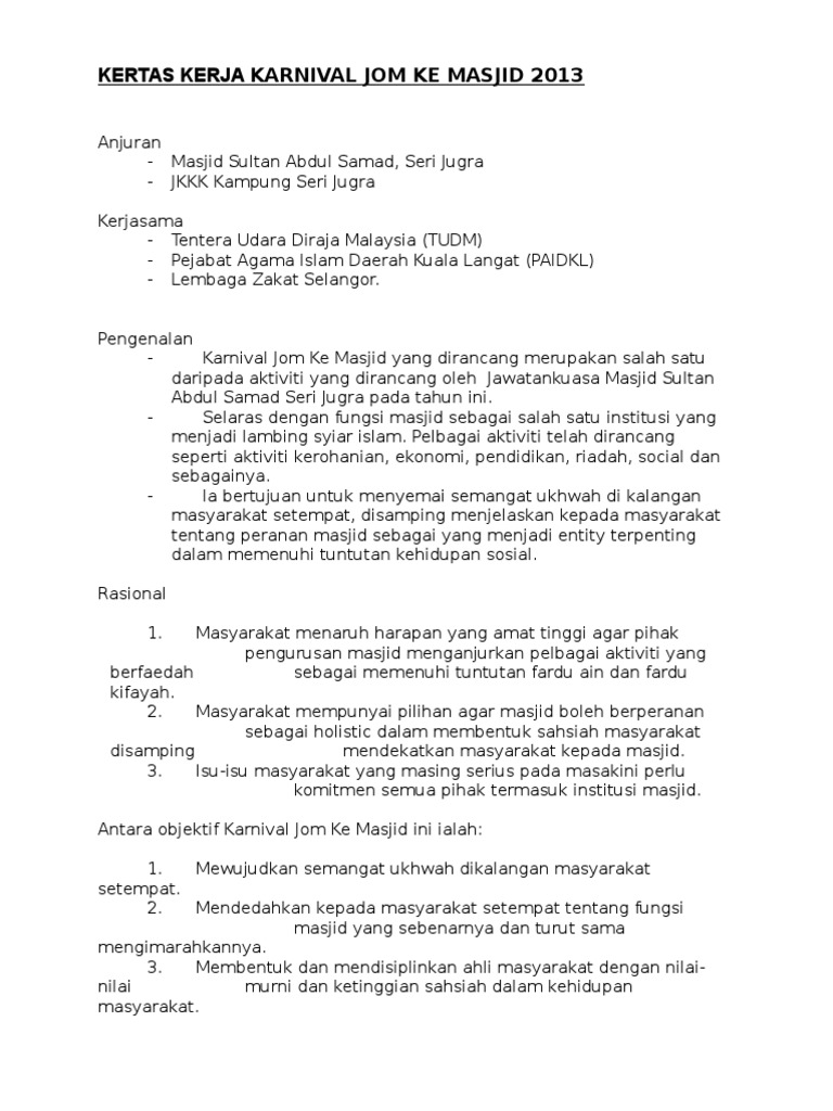 Kertas Kerja Karnival Jom Kem Masjid Mtj 2019